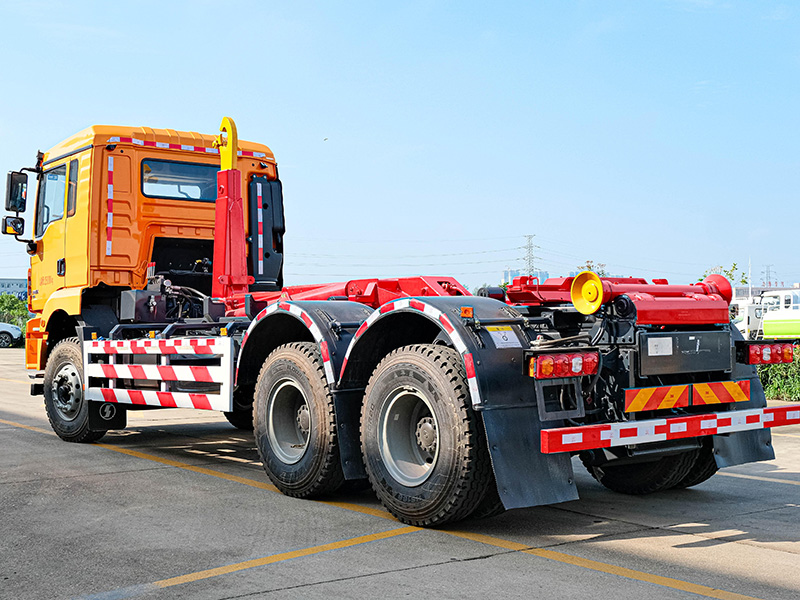 該車可將地下垃圾箱內(nèi)的垃圾及垃圾箱一同拉車上運(yùn)走同時(shí)可自卸,降低了工人的勞動(dòng)強(qiáng)度。該垃圾車的收運(yùn)方式是目前世界上廣泛采用的垃圾收運(yùn)方式,可以實(shí)現(xiàn)一車多箱,大大降低了配備成本和空間等等;其專用裝置的功能均以汽車發(fā)動(dòng)機(jī)為動(dòng)力,通過液壓機(jī)構(gòu)手動(dòng)或電控來(lái)實(shí)現(xiàn)。車輛的箱體采用優(yōu)質(zhì)炭鋼板全密封焊接結(jié)構(gòu),具有強(qiáng)度高、重量輕、不產(chǎn)生二次污染等優(yōu)點(diǎn)。