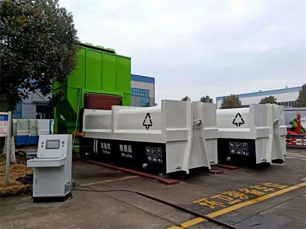分體式垃圾站上料方式可設(shè)計(jì)為:前翻斗翻轉(zhuǎn)上料、側(cè)翻斗翻轉(zhuǎn)上料、后翻斗翻轉(zhuǎn)上料、平臺上料等幾種式;配套轉(zhuǎn)運(yùn)車輛為車廂可卸式垃圾車,具有壓縮力大、處理效率高、機(jī)構(gòu)運(yùn)行可靠、可自動(dòng)循環(huán)操作和智能監(jiān)控、使用壽命長等特點(diǎn)。