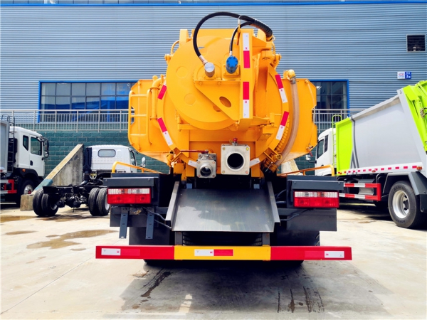 吸污部分:3.8方污罐,罐體5mmQ235優(yōu)質(zhì)碳鋼,配淄博SK-9水循環(huán)泵(北方地區(qū)可選裝真空油泵),8米吸污管一根,進(jìn)氣管加過濾網(wǎng),防溢閥加高,后蓋卡扣鎖緊,前視污亮管,后尾部加裝1個力拓牌**mm、150mm的球閥均帶進(jìn)出口,罐體帶舉升功能,后門帶液壓開啟。