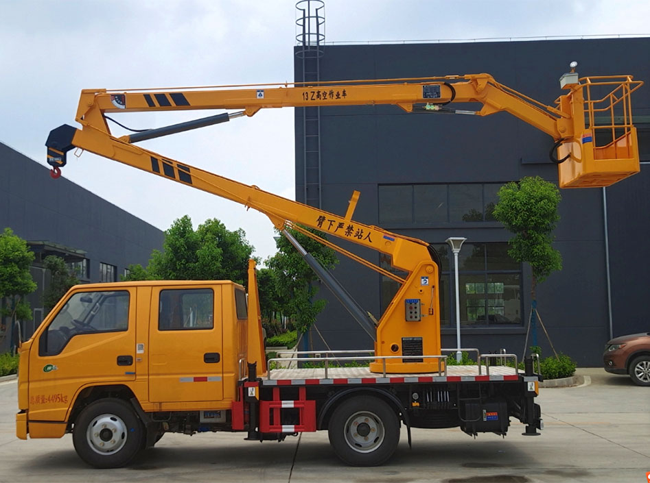 國六江鈴雙排13米藍牌曲臂高空作業(yè)車改裝配置:液壓360度全回轉(zhuǎn),三節(jié)折疊臂,單液壓舉升缸,帶雙向平衡閥,帶電控操作舉升臂, 四支液壓油缸可調(diào)式支腿帶雙向液壓鎖(支腿操作為手動操作,可單獨**),上下二套操作臺,帶 1 噸吊鉤,**作業(yè)高度 13米,**作業(yè)半徑 5.6 米,**起吊重量1噸。