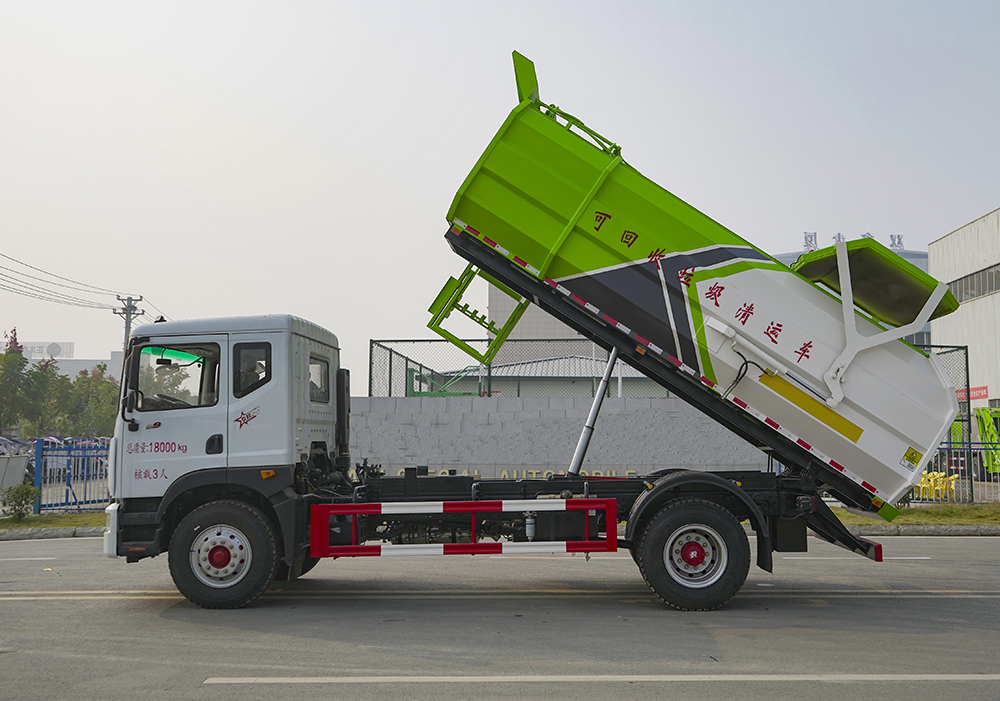 側(cè)裝對接式垃圾車的裝載容積是12立方,特點是一個車能配幾十個垃圾桶,能實現(xiàn)一臺車與多個垃圾桶聯(lián)合作業(yè),循環(huán)運輸,充分提高了車輛的運輸能力,特別適用于短途運輸,如環(huán)衛(wèi)部門對城鎮(zhèn)垃圾的清理、運輸?shù)?。同時,掛桶垃圾車還可以加裝其它功能,形成其它多功能掛桶垃圾車,如:掛桶壓縮式垃圾車、掛桶式泔水垃圾車、掛桶式對接垃圾車等。