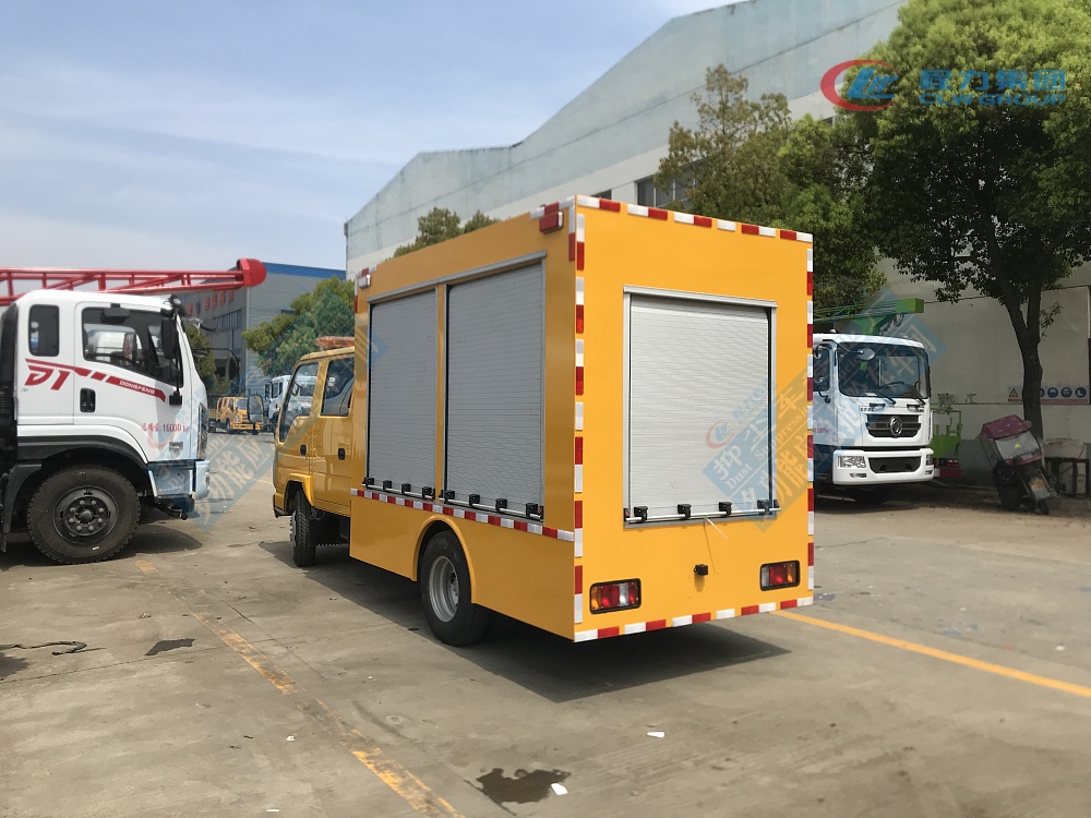 選裝配置:選裝行李架、爬梯、車頂工作臺;選裝不同形狀、結(jié)構(gòu)的**示燈;選裝中隔斷(可選擇開門)、車身兩側(cè)可選開上掀門、盲窗、側(cè)開門;花紋鋁板;加裝設(shè)備工具柜、配電箱、發(fā)電機組、水泵、電焊機、空壓機等線路安裝外接電源系統(tǒng)、(室內(nèi)燈光照明、探照燈、高桿照明燈等);繞線盤,還可根據(jù)用戶不同需求加裝不同的維修搶險設(shè)備、車身制作專用圖案或標識。